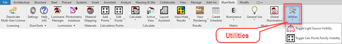 Toggle Calc Points Family Visibility The calculation point family markers used by ElumTools might get in your way visually. You can easily switch their visibility by clicking this command. This command is view specific.